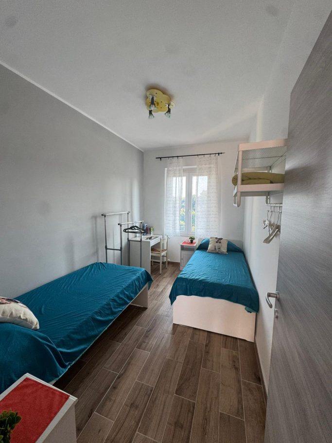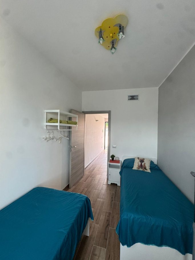 - 1 camera con 2 letti singoli, 2 comodini, porta abiti, scrivania.